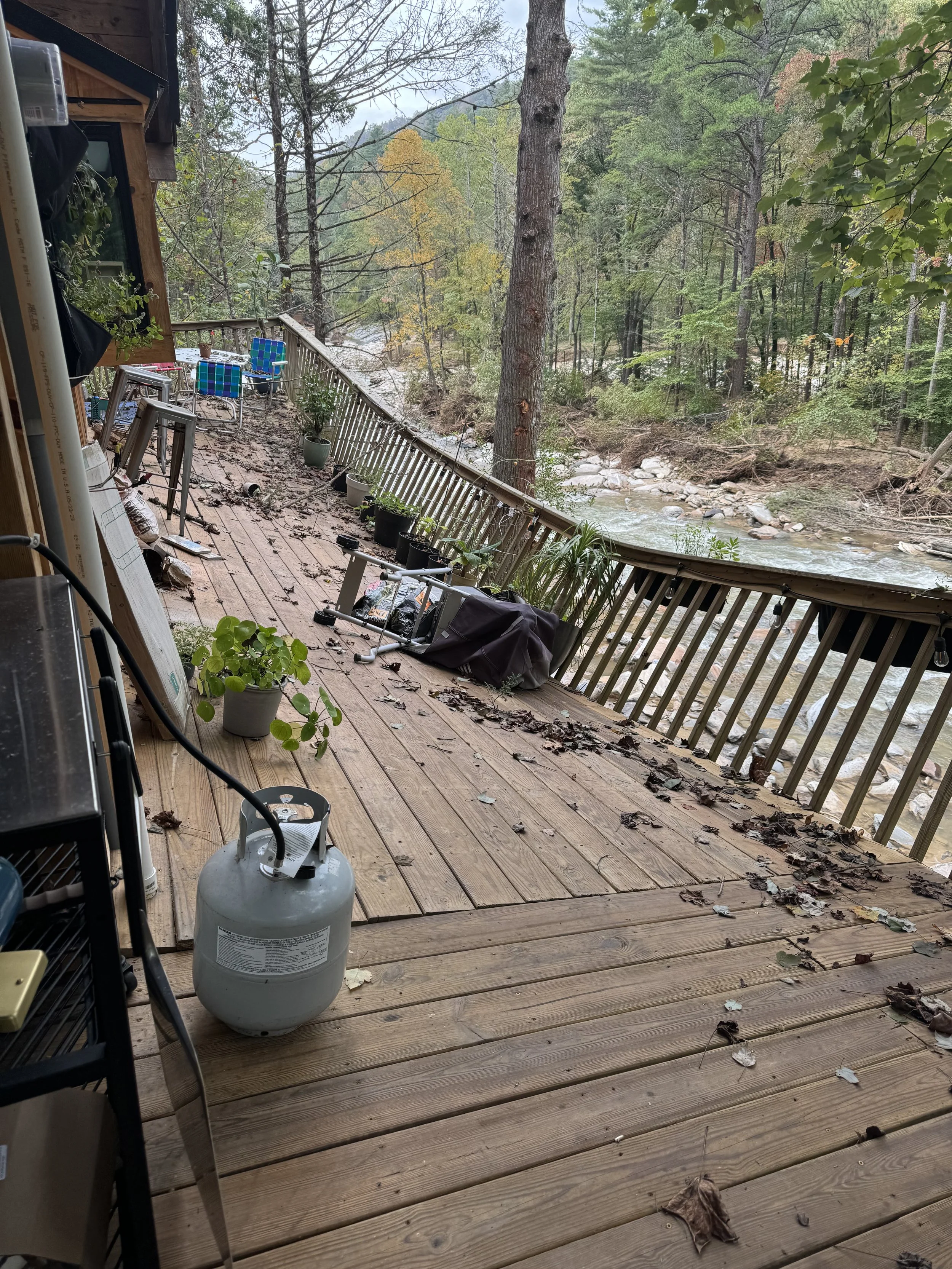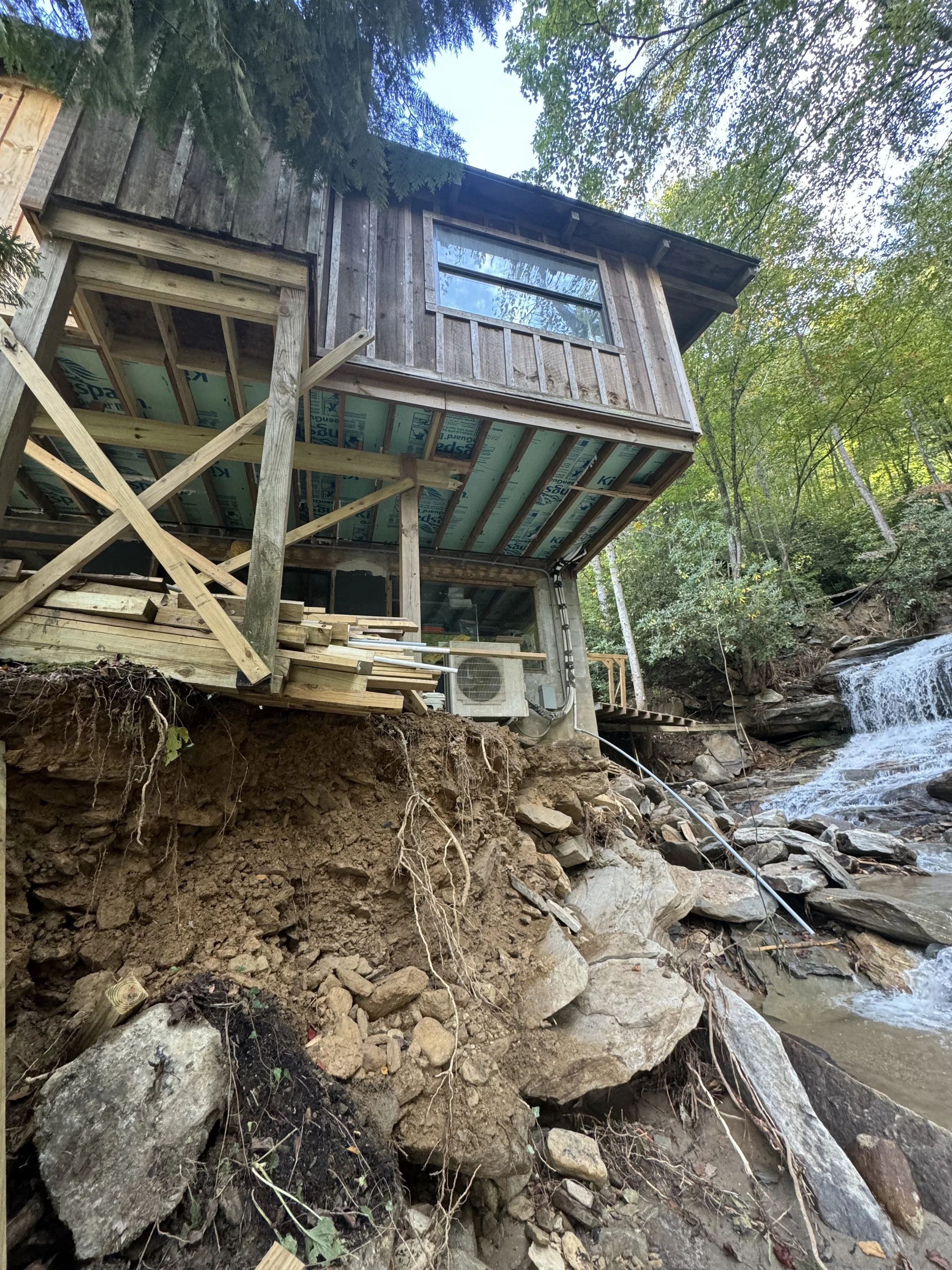 In September 2024, during Hurricane Helene, the homeowners were forced to evacuate to Asheville as the storm moved through the mountains. With the river rising and water moving fast through the valley, there was real uncertainty about what would be left behind.
