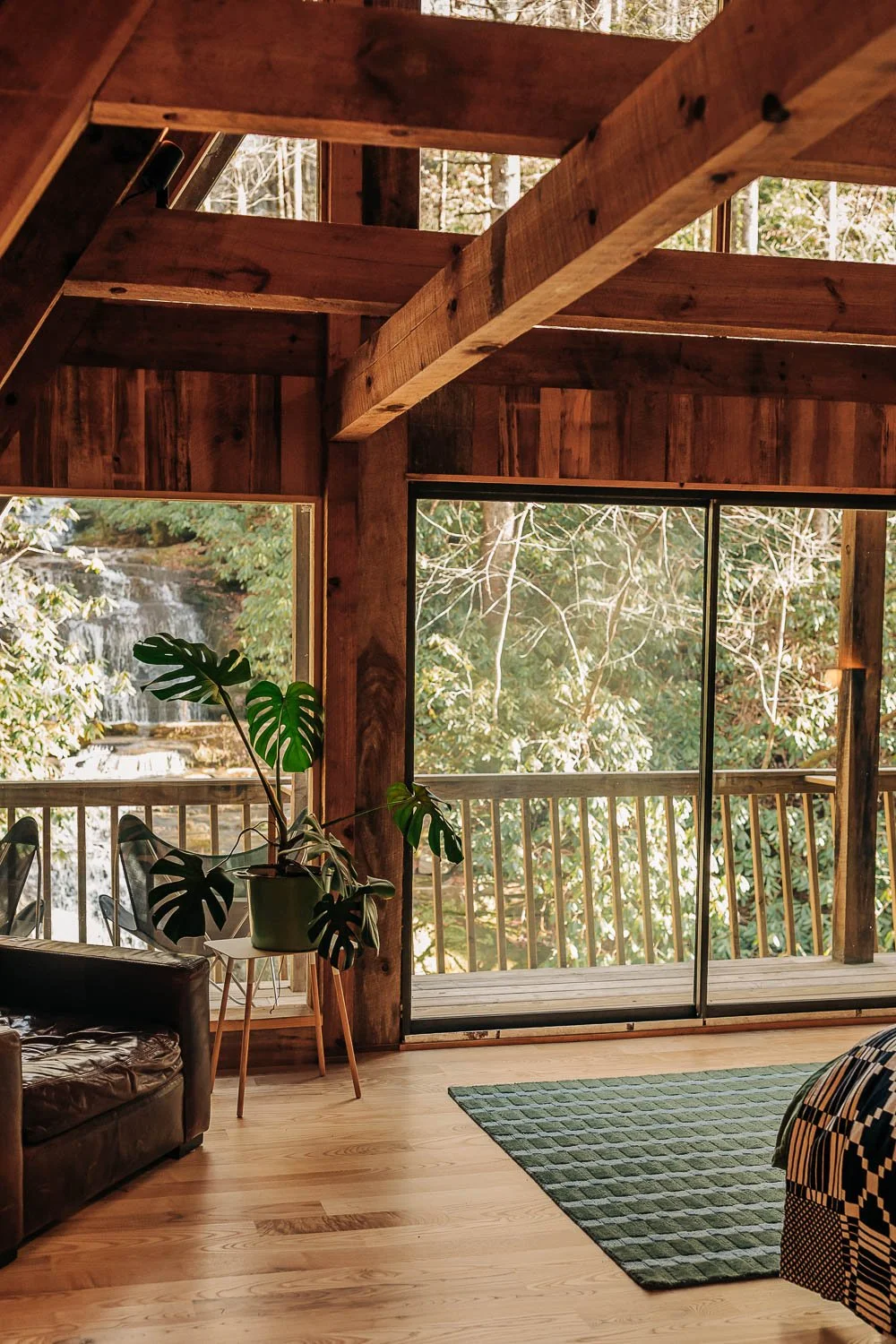 Set along a trout river with a waterfall just beyond the windows, this A-frame in Bat Cave, North Carolina had all the makings of something special. Built by hand, beam by beam, by the original homeowner, it carried a story worth preserving.